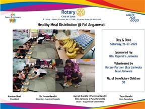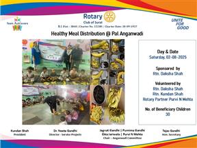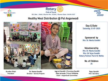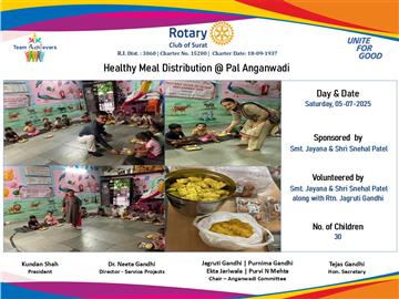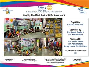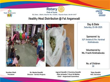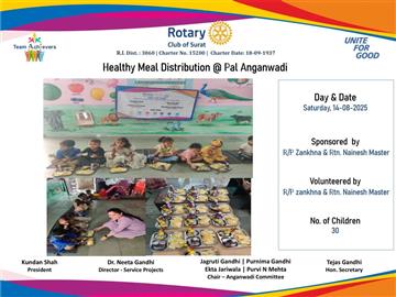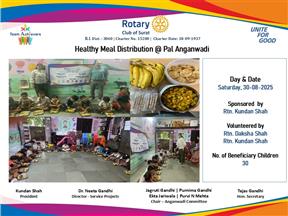 Rotary Club of Surat distributed healthy meal to 30 kids at Pal Ang. . .